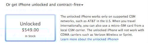 According to apple website, the unlocked iPhone includes all the features of iPhone but without a contract commitment. You can activate and use it on the supported GSM wireless network of your choice, such as AT&T in the United States. The unlocked iPhone 4 or iPhone 4S will not work with CDMA-based carriers such as Verizon Wireless or Sprint.