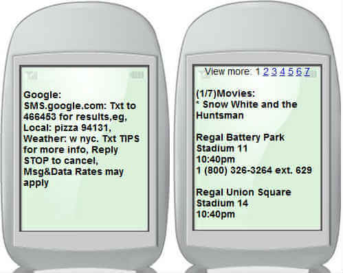 What ever your questions you want to search from Google, just send an SMS text message to 466453 (GOOGLE) to use Google SMS Search, that is all you need. You will get your search results as text messages to your phone.