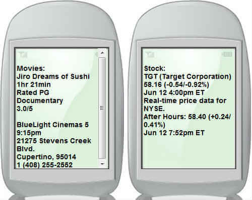 - Additional features include movie show times, stock quotes, definitions, driving directions, calculator, and more.
